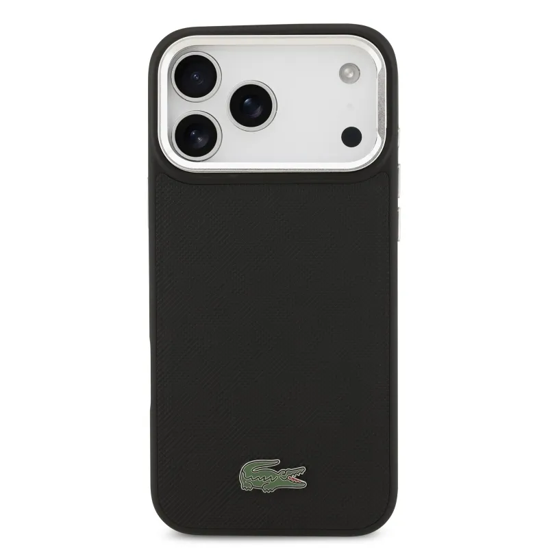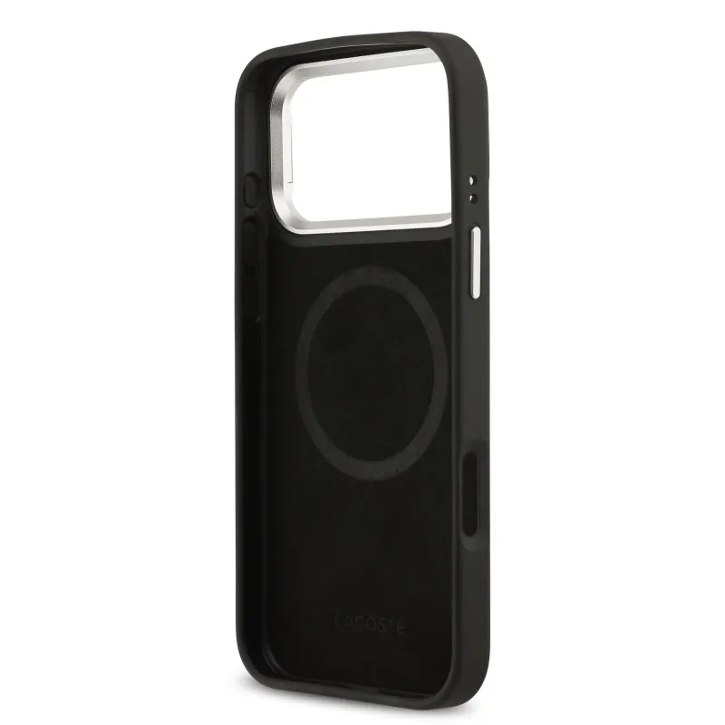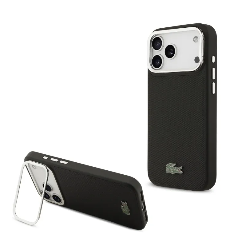 Lacoste Iconic Petit Pique kameraállvány MagSafe hátlapi borító iPhone 17 Pro Max-hoz Fekete