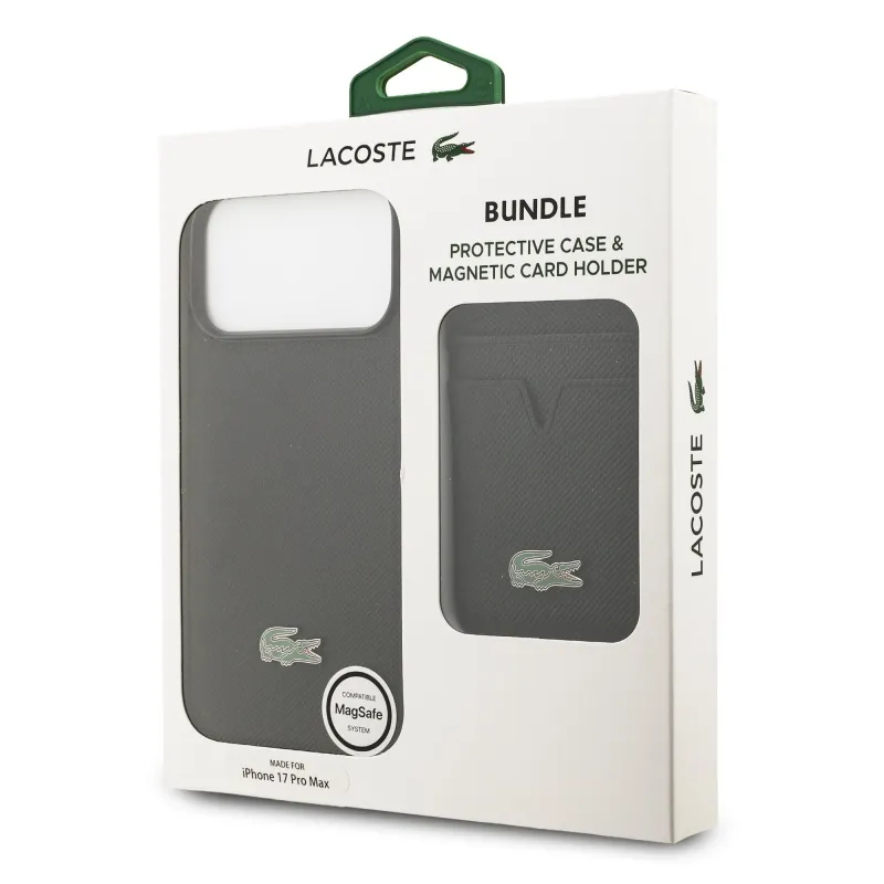 Lacoste Iconic Petit Pique MagSafe MagSafe hátlap + pénztárca iPhone 17 Pro Max-hoz Fekete