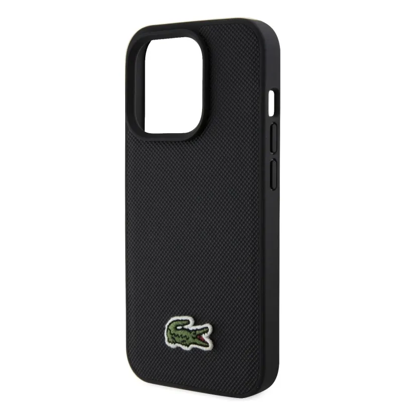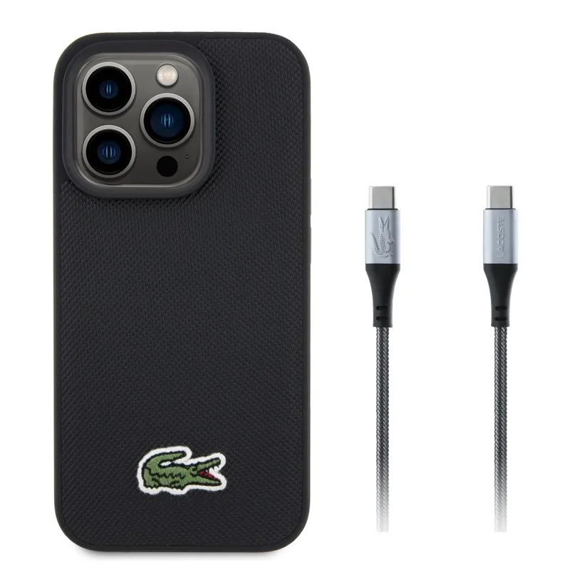 Lacoste Iconic Petit Pique Woven Logo MagSafe hátlap iPhone 15 Pro fekete + USB-C/USB-C adatkábelhez