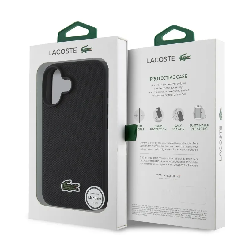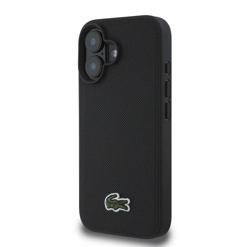 Lacoste Iconic Petit Pique Woven Logo MagSafe hátlap iPhone 16 Plus-hoz fekete