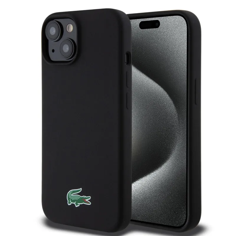 Lacoste Liquid Silicone Microfiber Croc Logo Magsafe hátlap iPhone 15 Fekete fekete