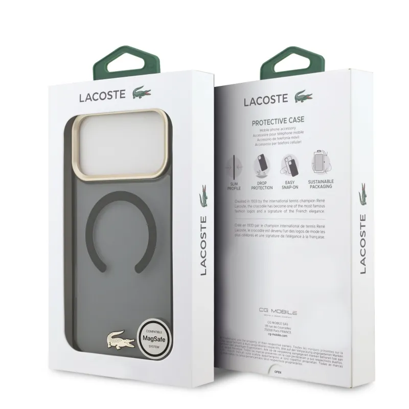 Lacoste PC/TPU Frosted Finish Gold Logo MagSafe hátlap iPhone 17 Pro Max-hoz fekete