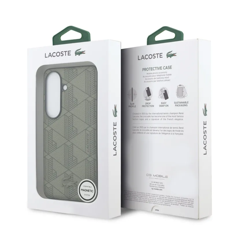 Lacoste PVC Blend Monogram mágneses hátlap Samsung Galaxy S26 mágneses hátlapja Khaki