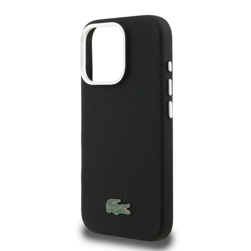 Lacoste PVC Iconic Petit Pique fém logó MagSafe hátlap iPhone 16 Pro-hoz Fekete
