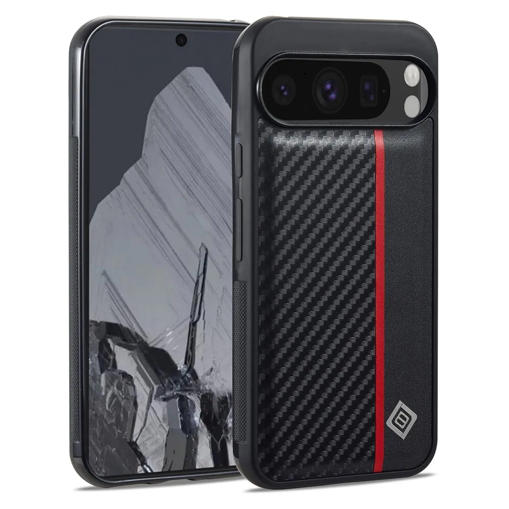 ✅【TPU + EVA alaptok】LC.IMEEKE tartós zselés tok Google Pixel 10 Pro/Pixel 10 készülékhez - fekete/piros, strapabíró, kettő az egyben kialakítással, TPU és EVA alaplappal, amely kiváló ütéscsillapítást és tartósságot biztosít a maximális eszközvédelem érdekében. ✅【Karbon PU bőr piros csíkkal】 A tok a letisztult szénszálas PU bőrt egy finoman texturált PU bőr résszel ötvözi, amelyet egy merész piros függőleges csík emel ki, modern és stílusos megjelenést kölcsönözve.