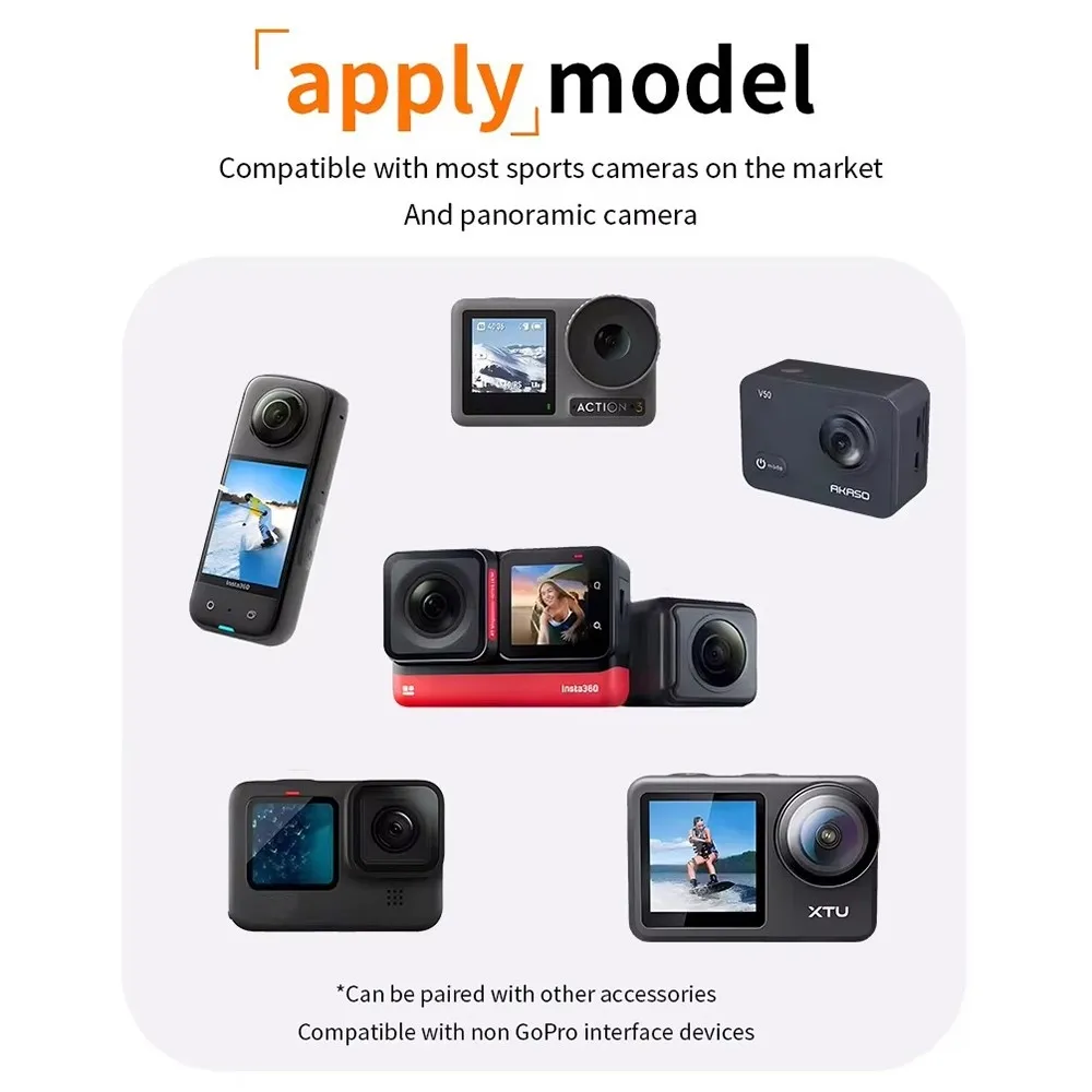 Az integrált tartó szabványos 1/4" menettel rendelkezik, amely kompatibilitást biztosít a legtöbb akciókamerával. Kompakt mérete és alacsony súlya megkönnyíti a szállítást utazás és sport közben.