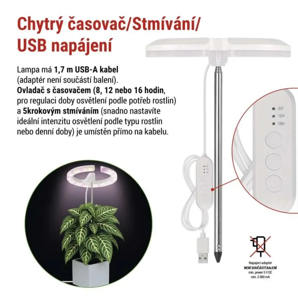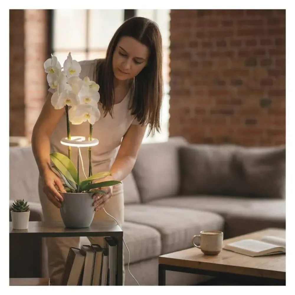 A kör alakú lámpatestet úgy tervezték, hogy akár a növény virágai alá is elhelyezhető legyen, és finoman alulról világítsa meg a leveleket és a szárakat. Ennek köszönhetően elegendő fényt biztosít a növekedéshez anélkül, hogy közvetlen túlmelegedést vagy az érzékeny virágzat károsodását okozná. Ezért ideális megoldás orchideákhoz és minden érzékeny virágzatú növényhez.