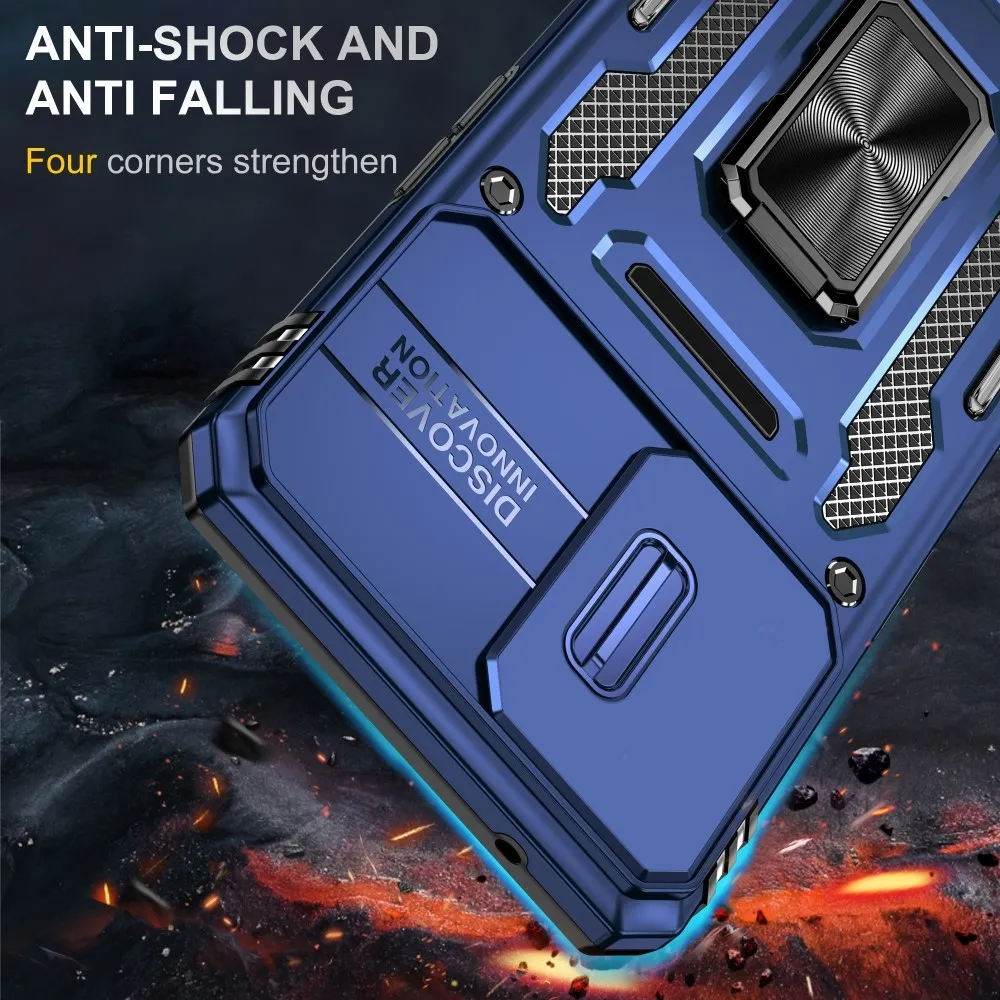 Tartós tokunk ötvözi a fém szilárdságát, a rugalmas gél rugalmasságát és a műanyag praktikumát, hogy maximális védelmet nyújtson telefonjának az esések, karcolások és egyéb sérülések ellen. A sötétkék szín elegáns és modern megjelenést kölcsönöz, míg az innovatív csúszó kameralencse-védő biztosítja, hogy fényképeid mindig élesek és mentesek legyenek a lencse karcolásaitól.