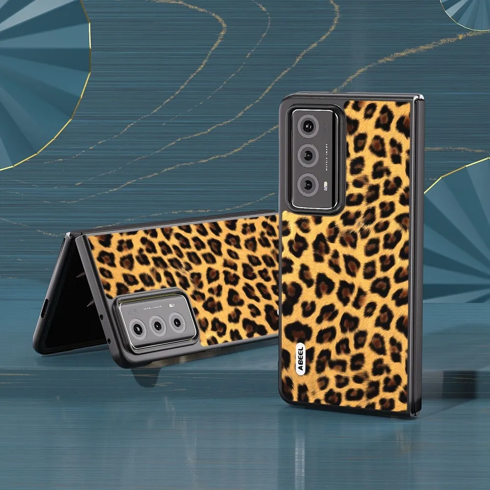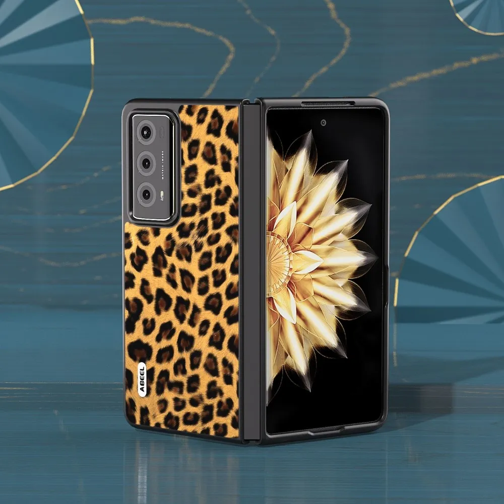 Leopárd műanyag tok műbőrrel a Honor Magic V2 készülékhez - arany színű