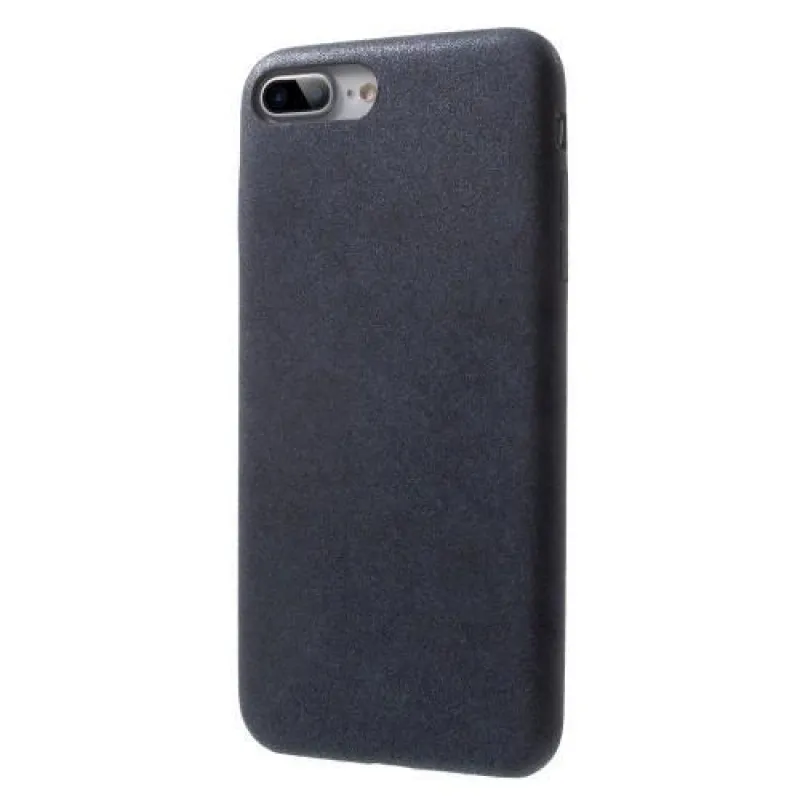 Lethy műanyag tok PU bőr hátlappal iPhone 7 Plus és iPhone 8 Plus készülékhez - sötétkék