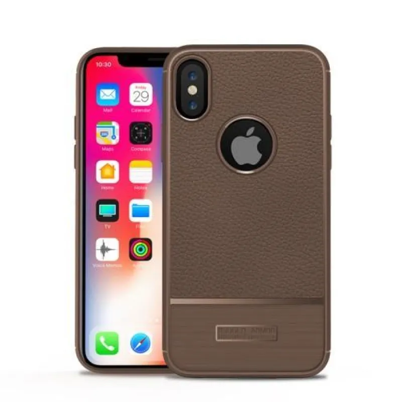 Elegáns barna, rugalmas szilikon tok bőrutánzatban iPhone X készülékhez