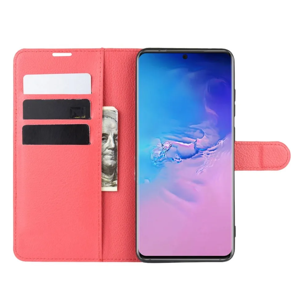 Piros Litchi pénztárca tok Samsung Galaxy S20 Ultra számára