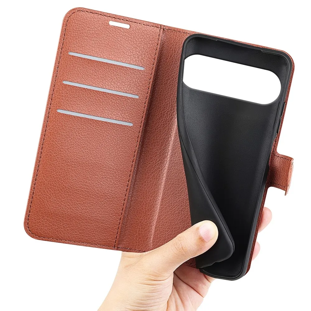 Barna Litchi pénztárca tok a Google Pixel 10 Pro XL-hez