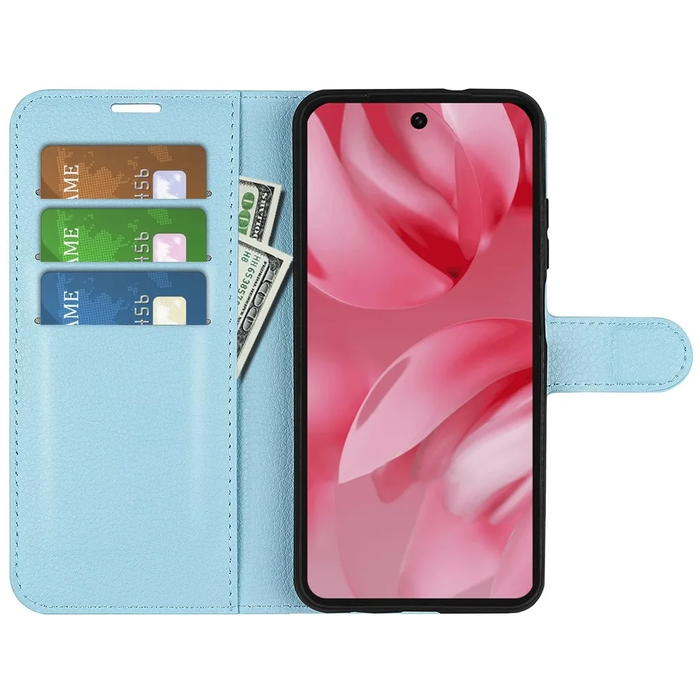 Kék Litchi pénztárca tok a Google Pixel 10 számára