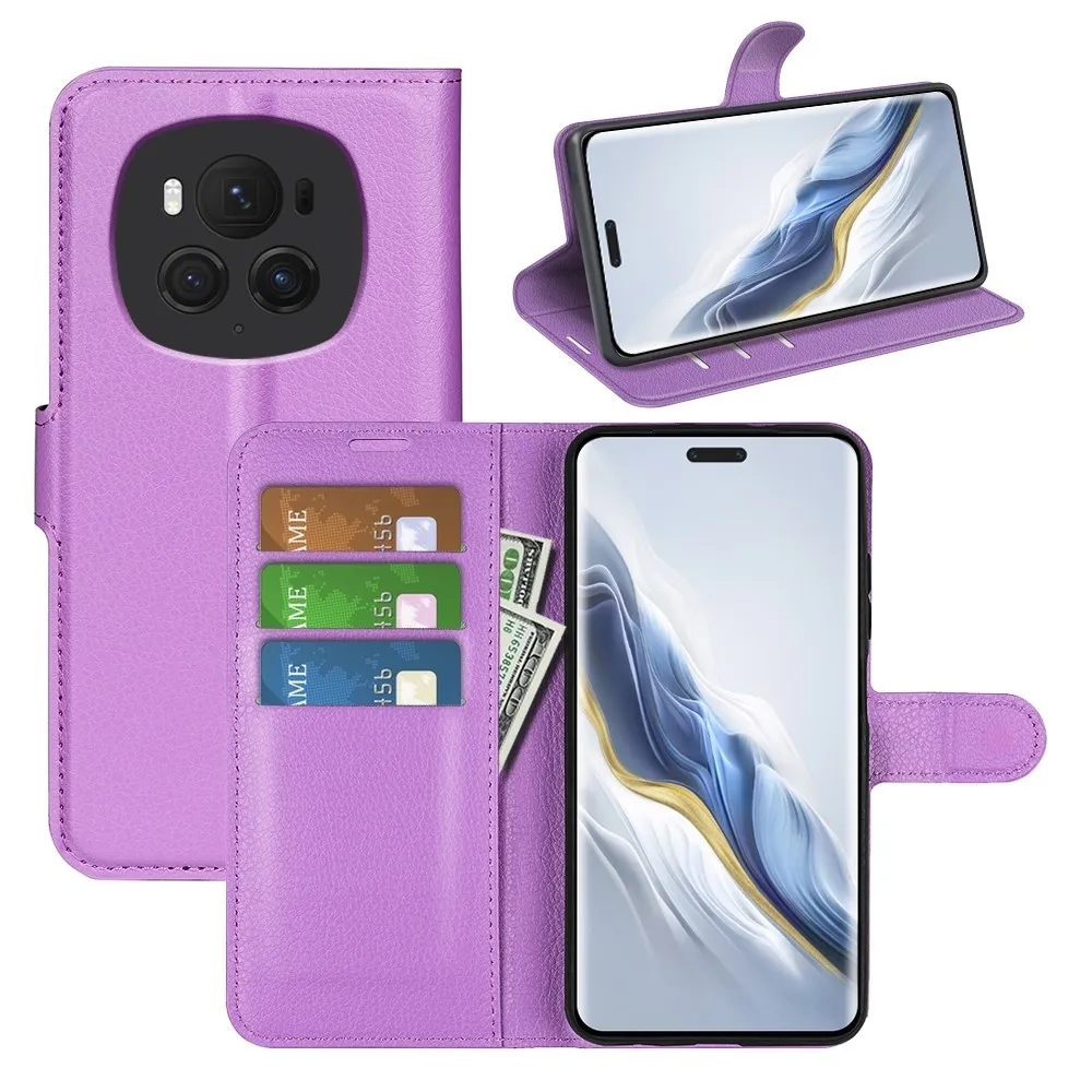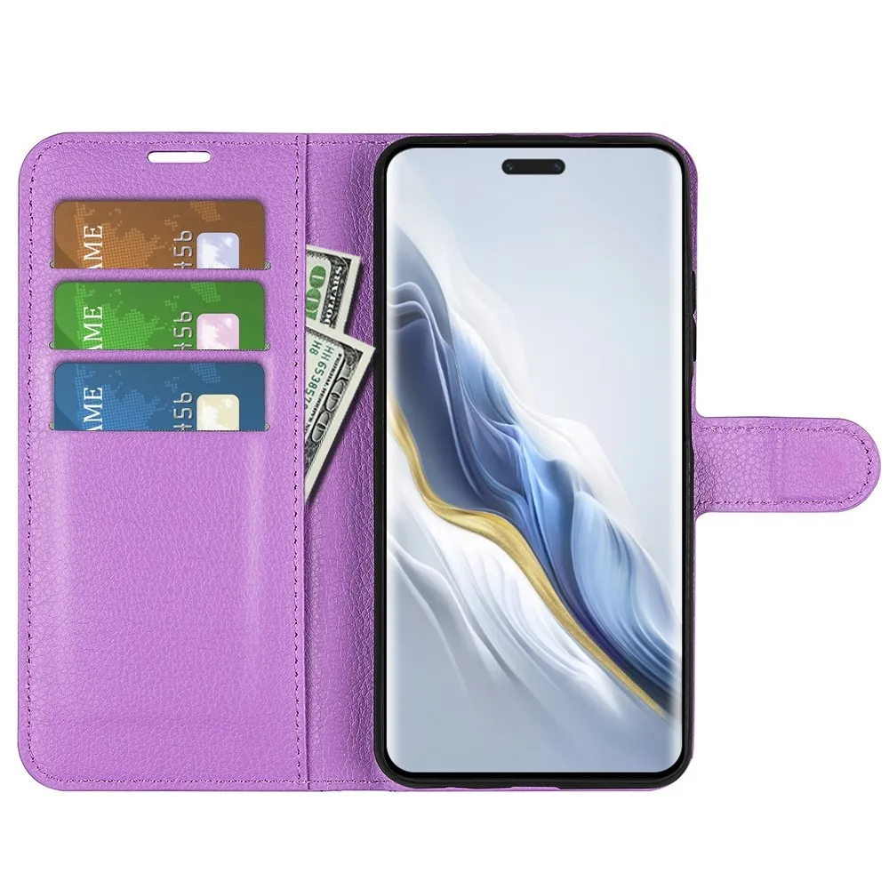 Lila Litchi pénztárca tok a Honor Magic 6 Pro 5G számára