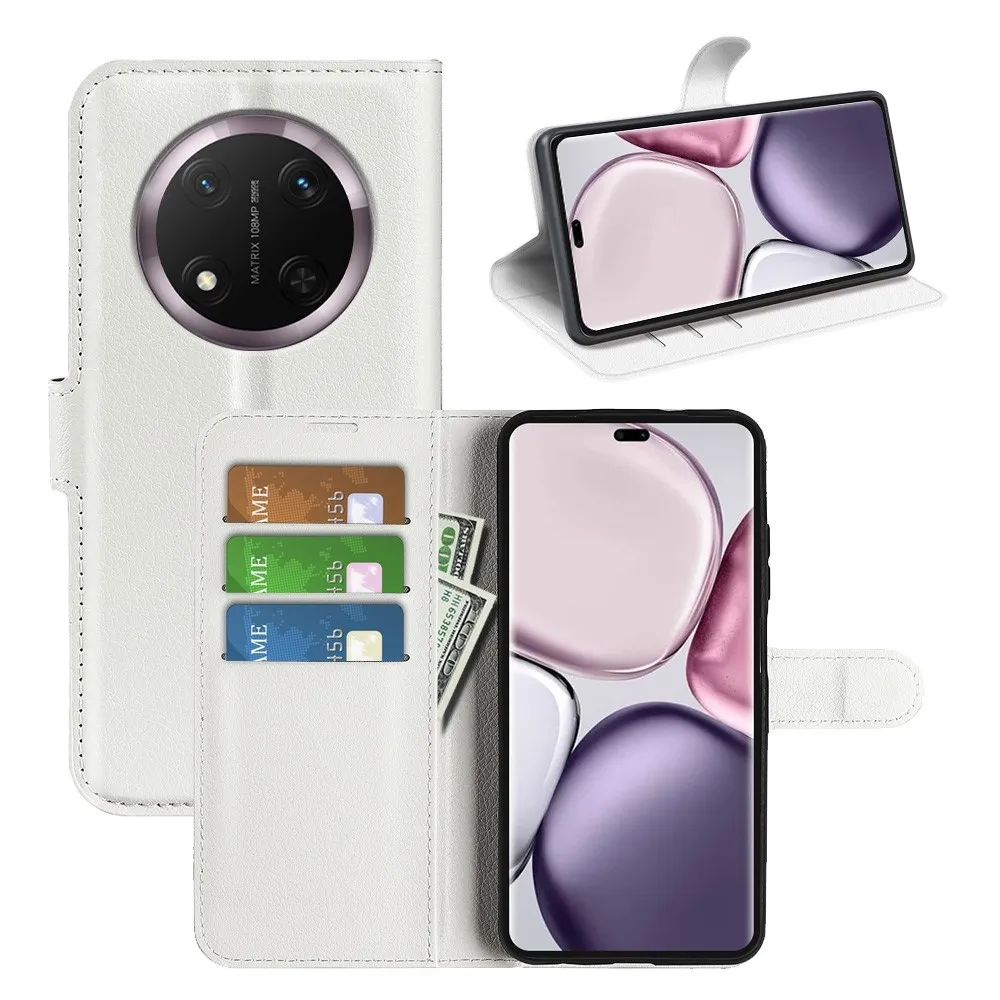 Fehér Litchi pénztárca tok a Honor Magic 7 Lite 5G számára
