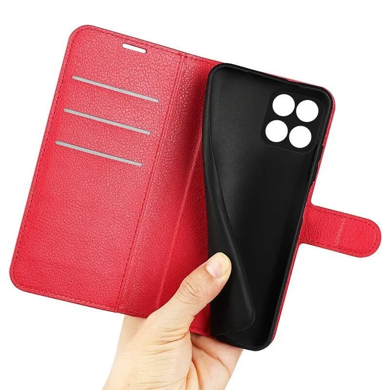Litchi piros pénztárca tok a Honor X8 5G/Honor 70 Lite 5G számára