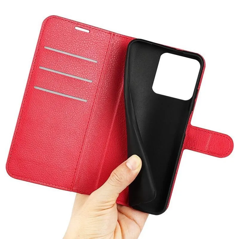 Litchi piros pénztárca tok a Xiaomi 13 Pro számára