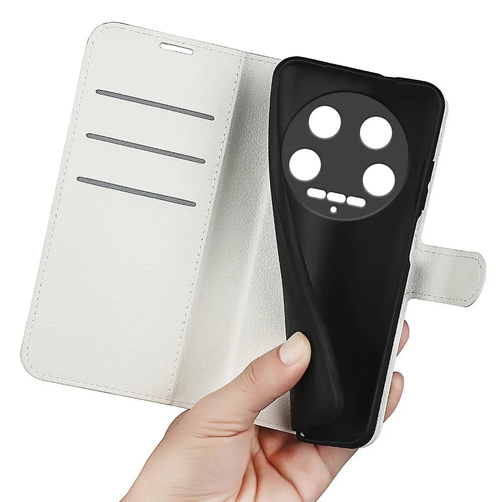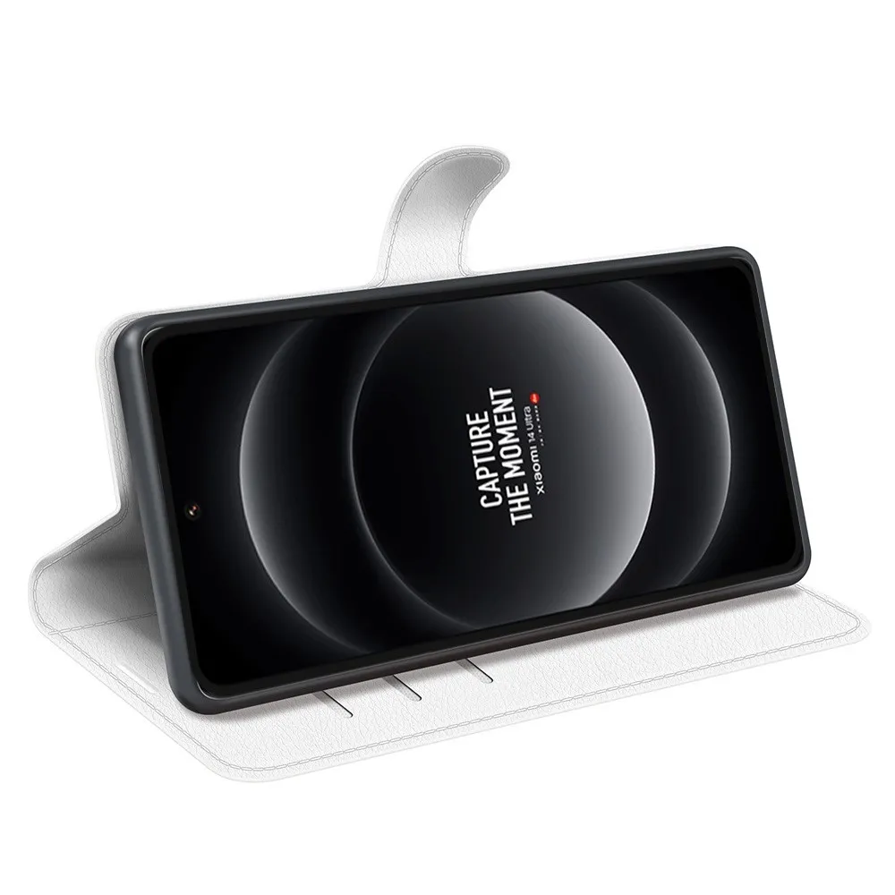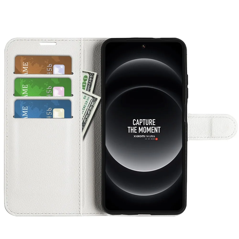Fehér Litchi pénztárca tok a Xiaomi 14 Ultra számára