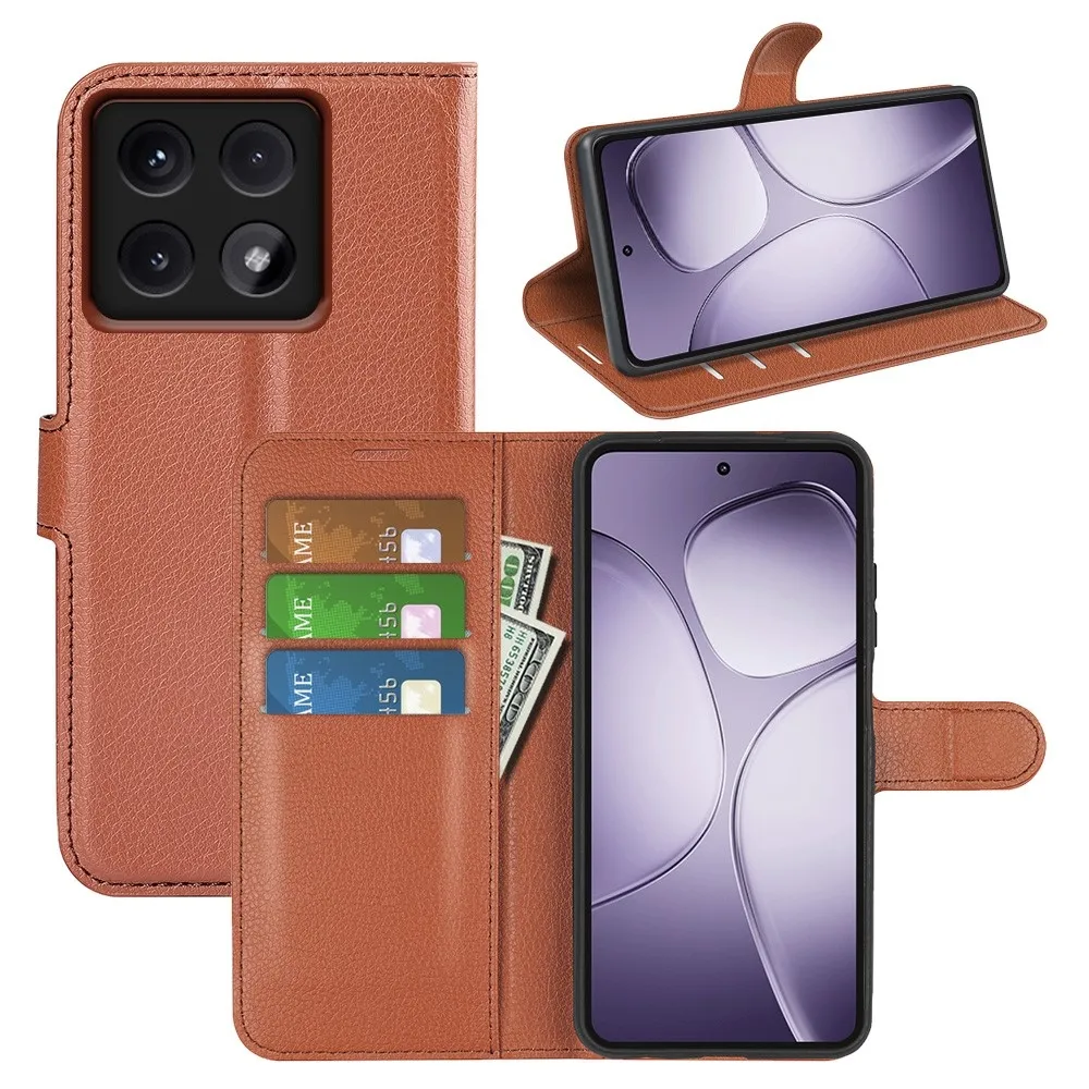 Barna Litchi pénztárca tok Xiaomi 14T Pro számára