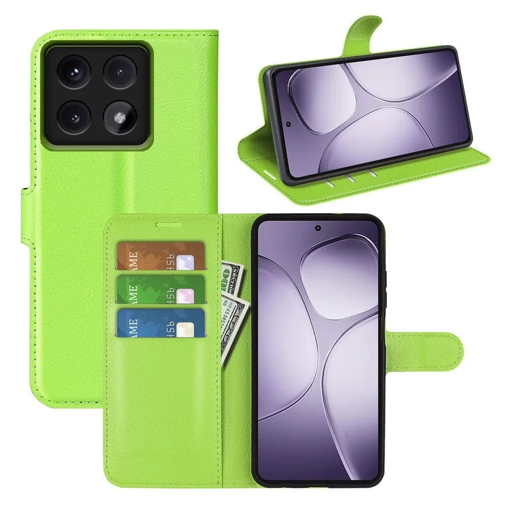 Zöld Litchi pénztárca tok Xiaomi 14T Pro számára