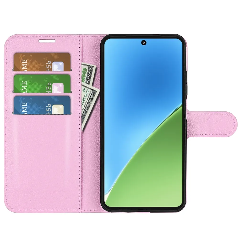 Rózsaszín Litchi pénztárca tok a Xiaomi 15 számára
