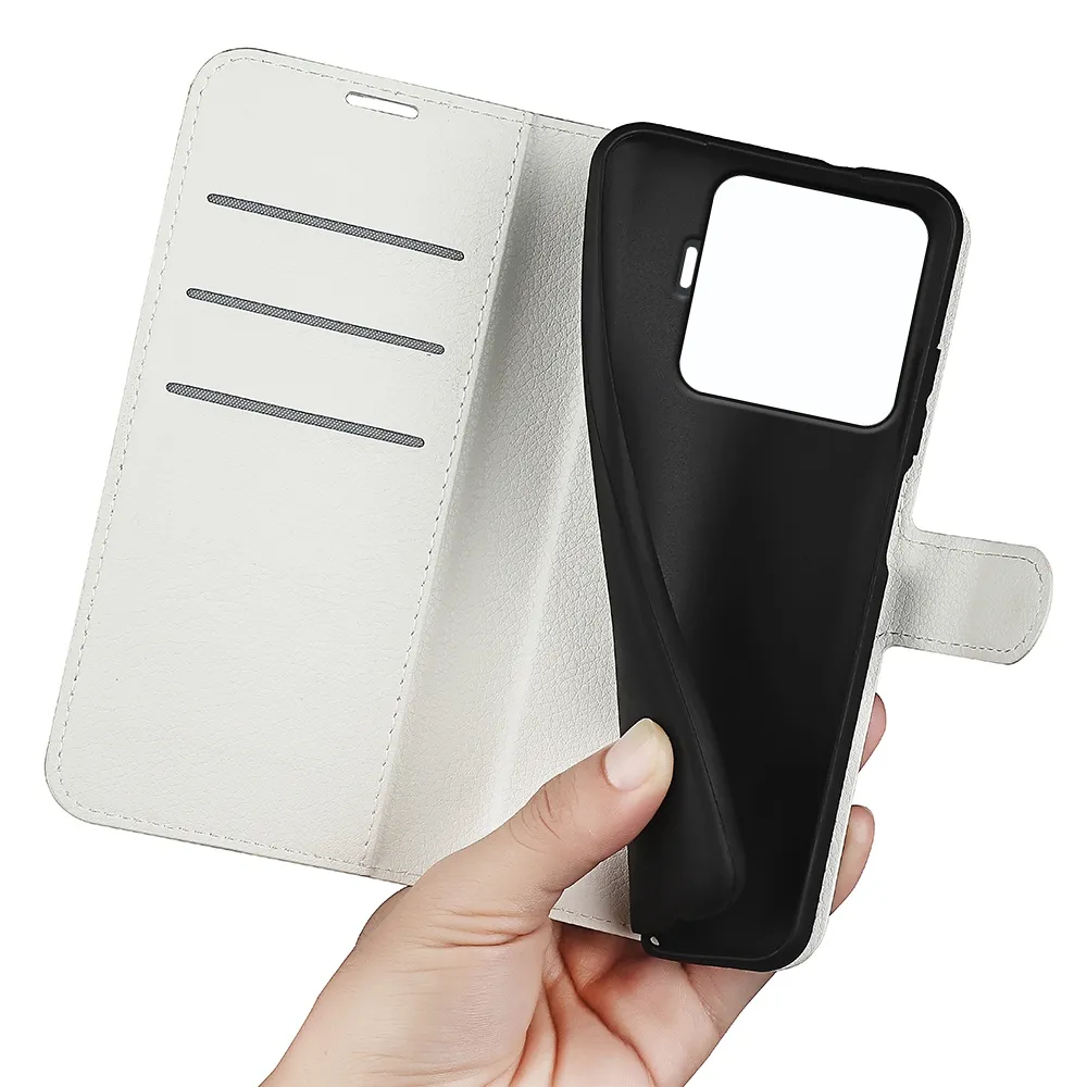 Fehér Litchi pénztárca tok Xiaomi 15T Pro számára