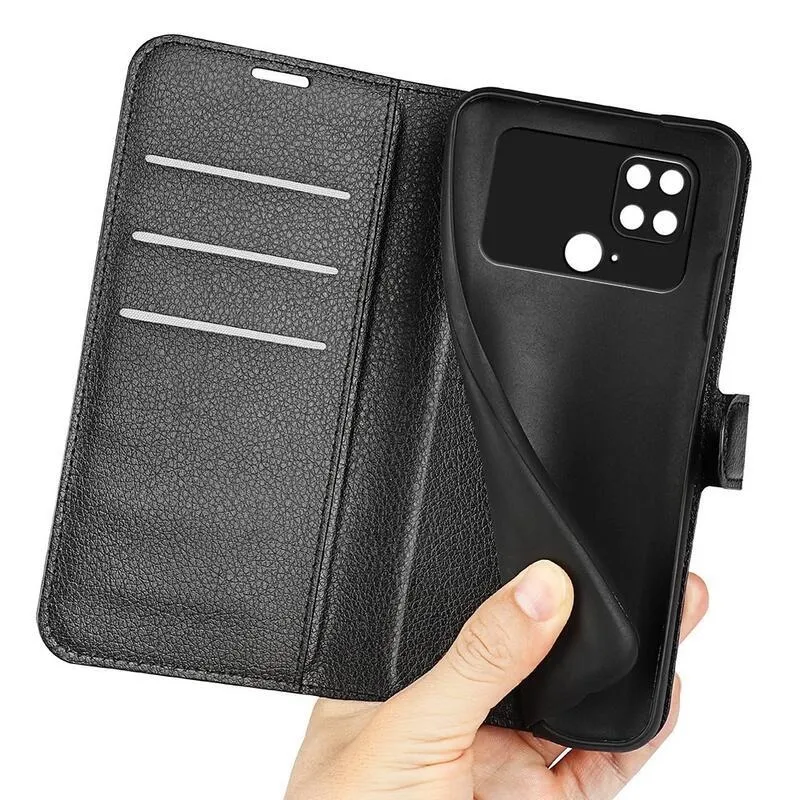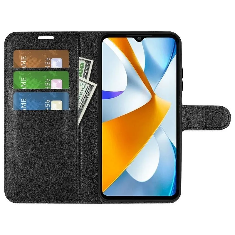 Litchi fekete pénztárca tok a Xiaomi Poco C40 számára