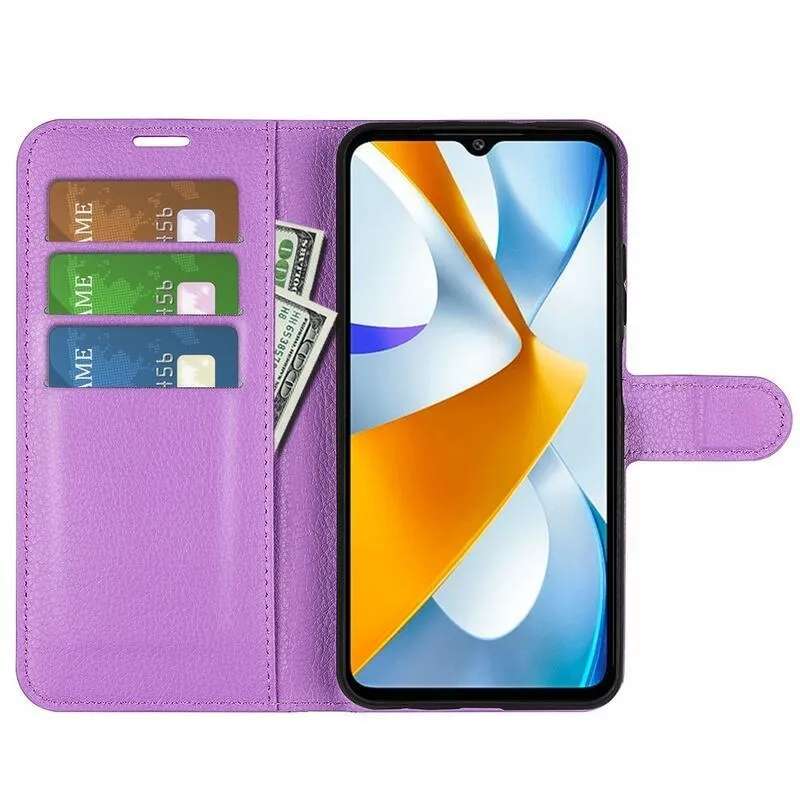 Litchi lila pénztárca tok a Xiaomi Poco C40-hez