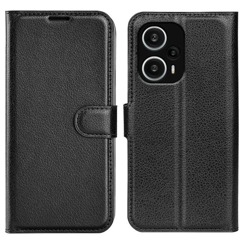 Litchi fekete pénztárca tok a Xiaomi Poco F5 számára
