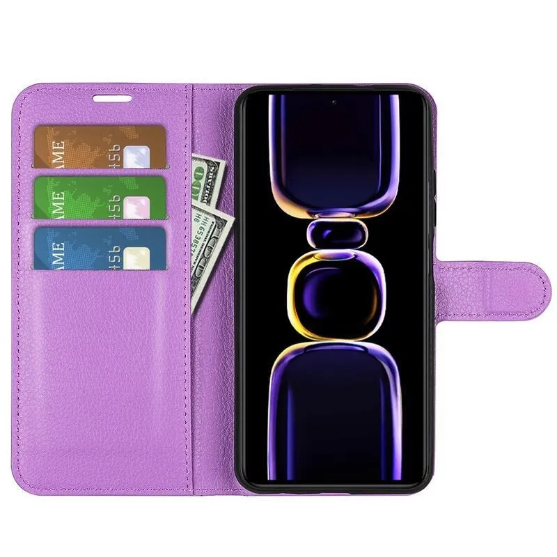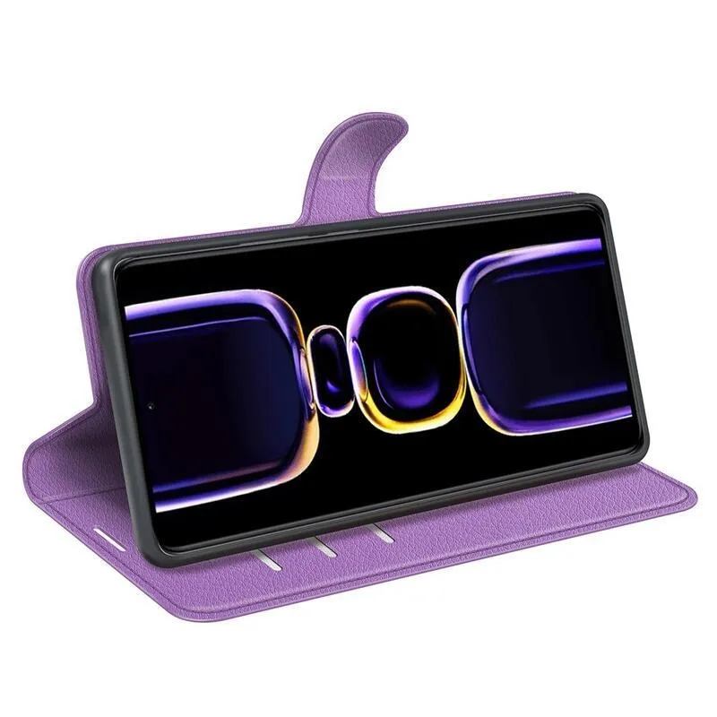 Litchi lila pénztárca tok a Xiaomi Poco F5 Pro számára