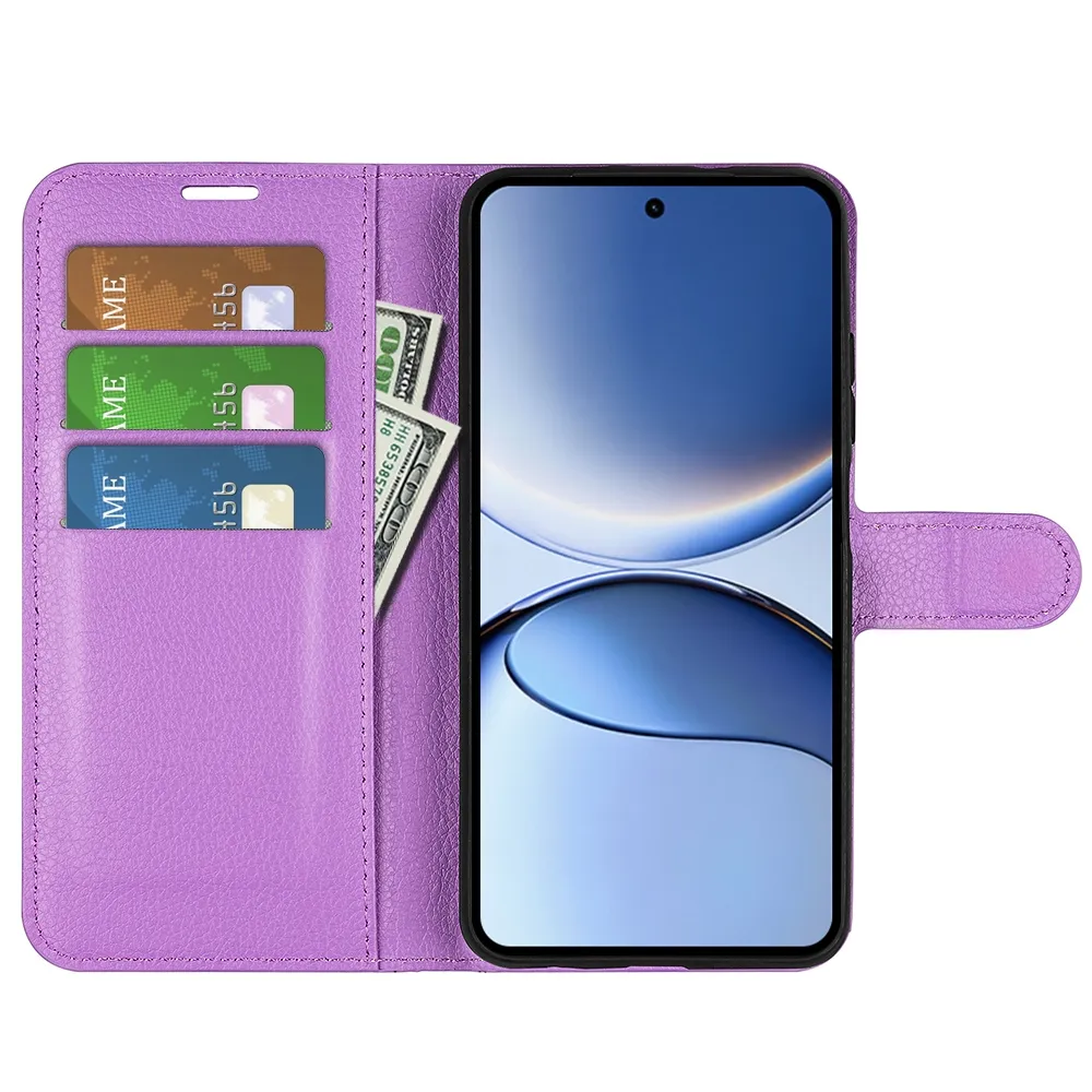 Lila Litchi pénztárca tok Xiaomi Poco F7 5G számára