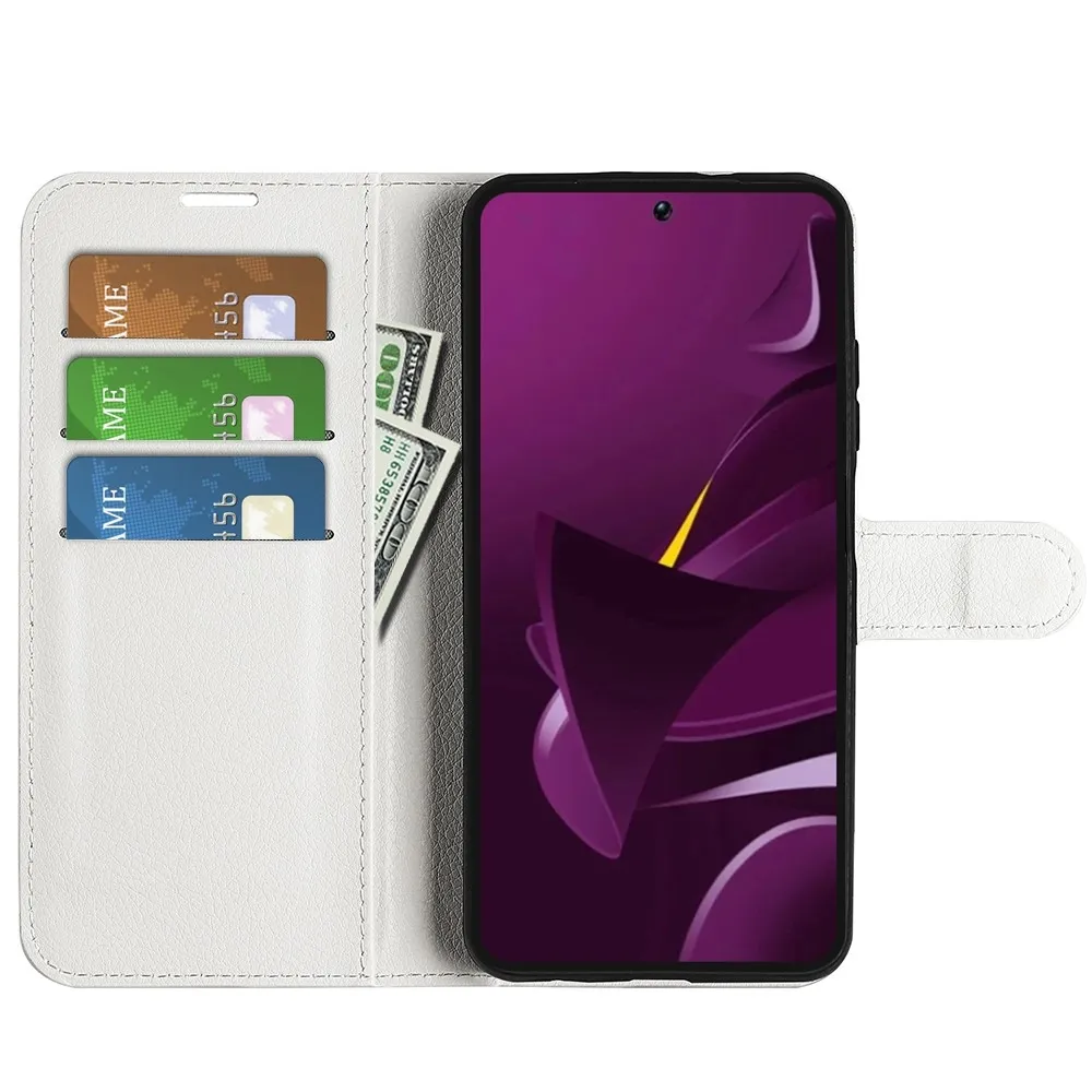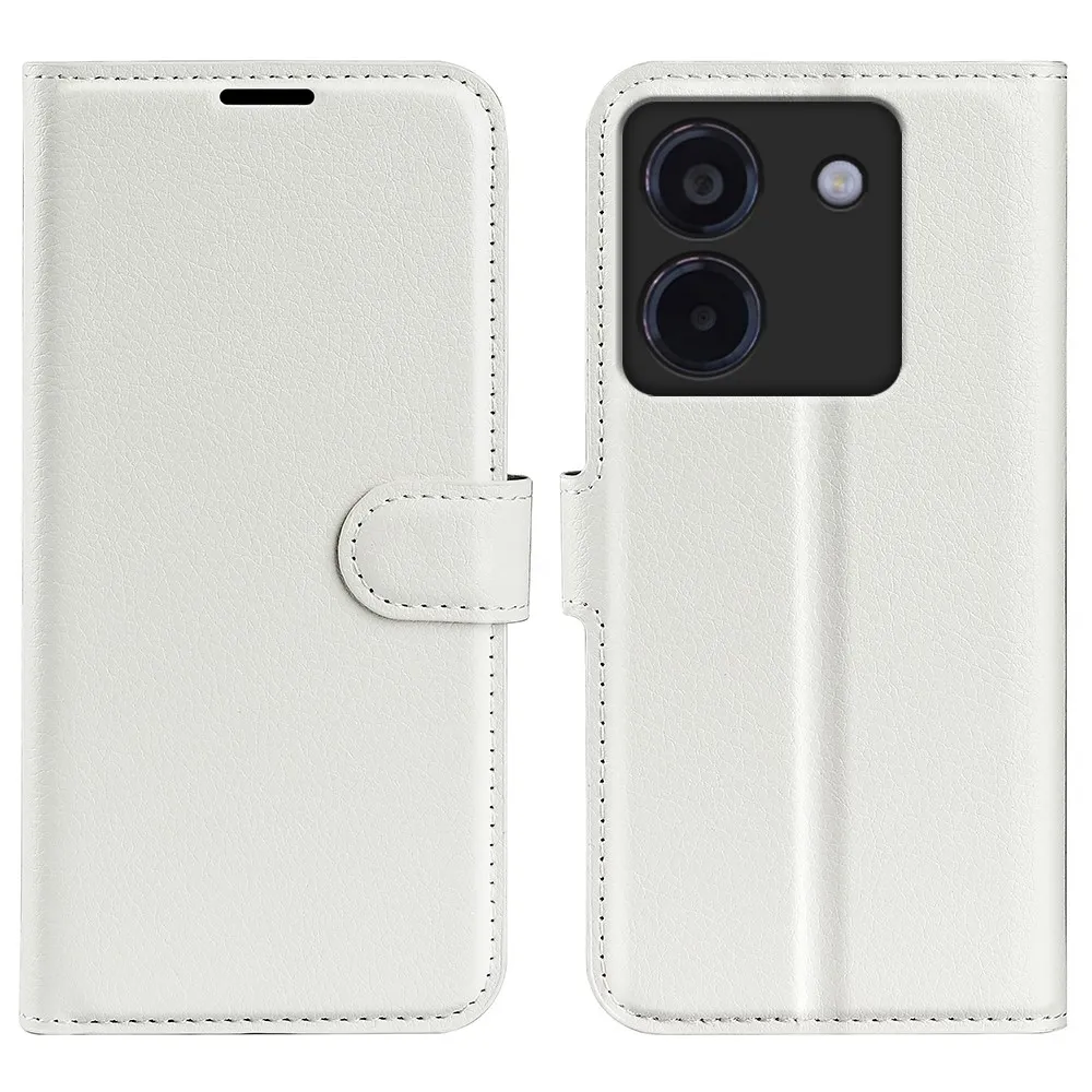 Fehér Litchi pénztárca tok a Xiaomi Poco M7 Pro 5G számára