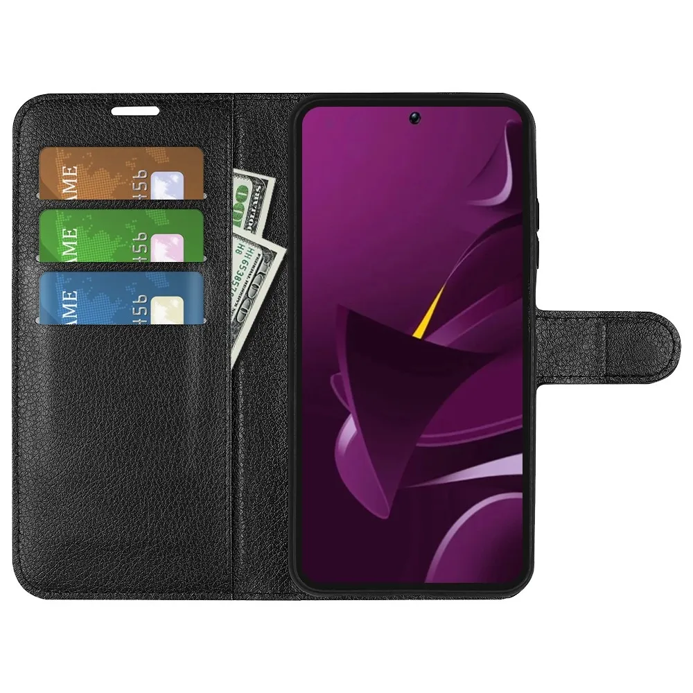 Fekete Litchi pénztárca tok a Xiaomi Poco M7 Pro 5G számára