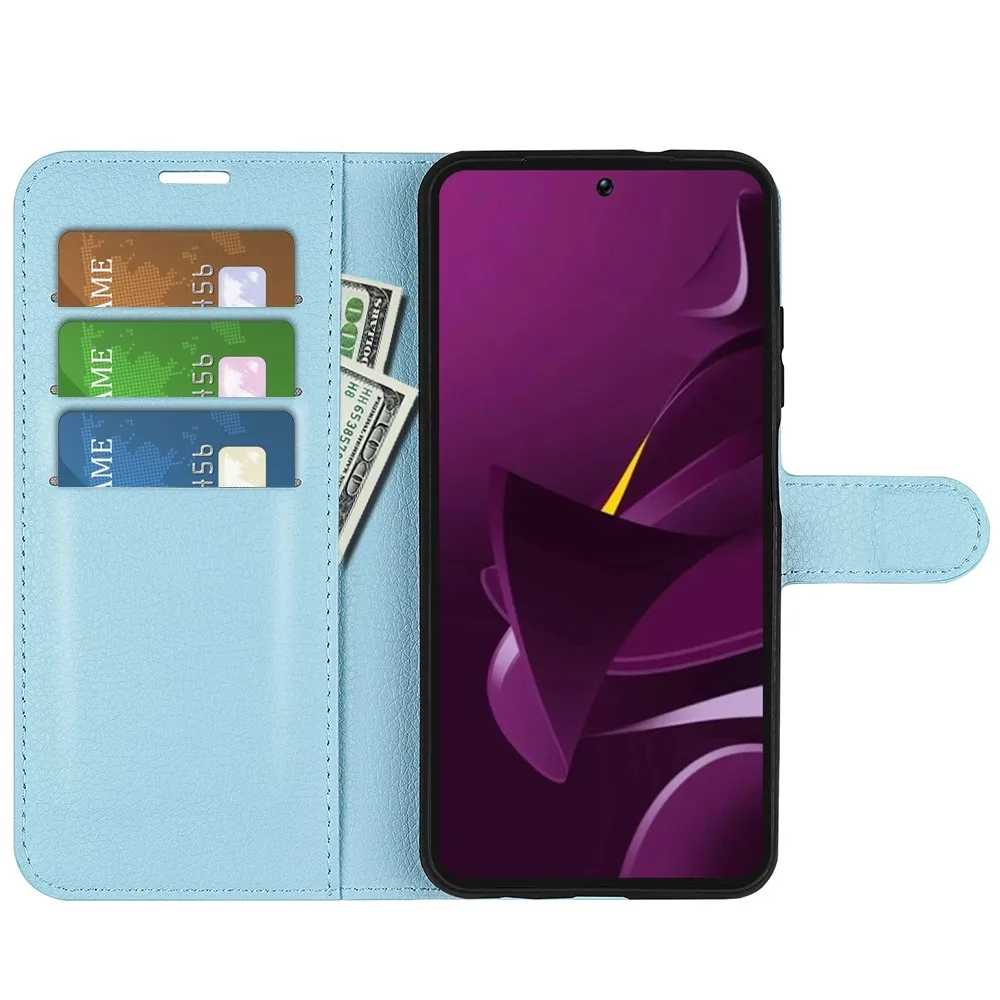 Kék Litchi pénztárca tok a Xiaomi Poco M7 Pro 5G számára