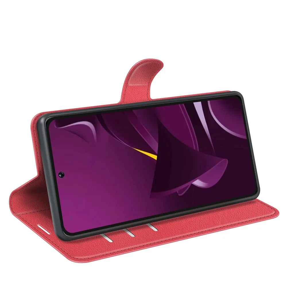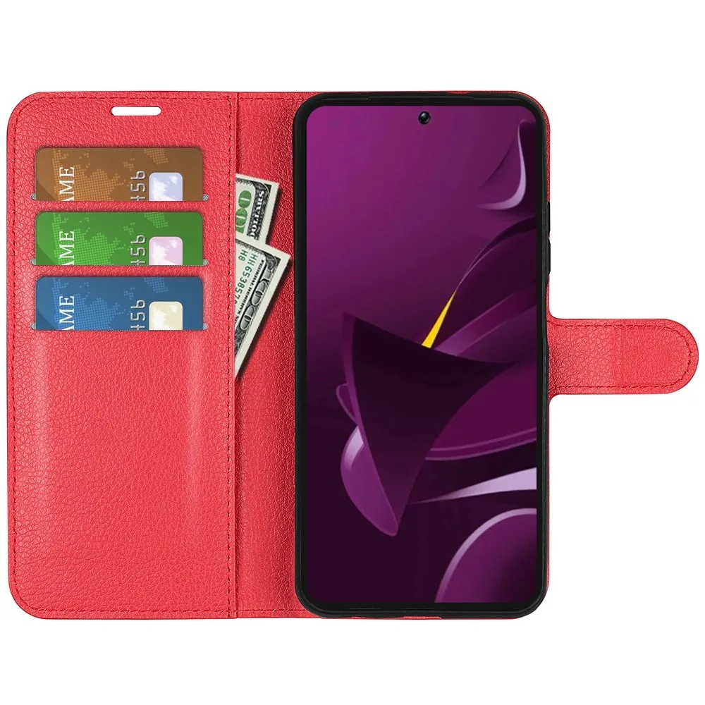 Piros Litchi pénztárca tok a Xiaomi Poco M7 Pro 5G-hez