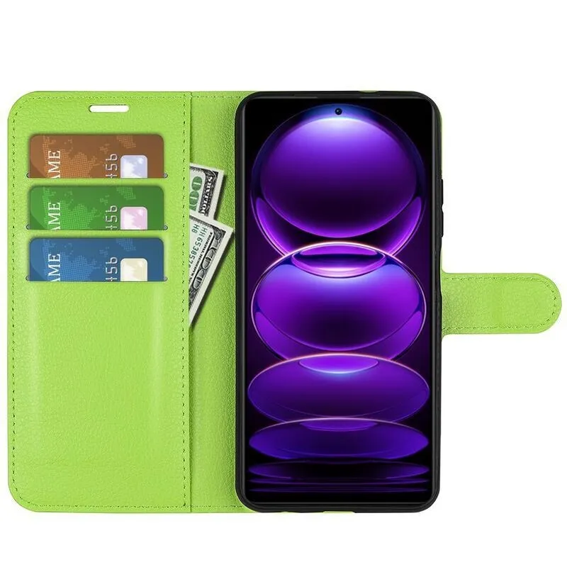 Litchi zöld pénztárca tok Xiaomi Redmi Note 12 Pro+ 5G számára
