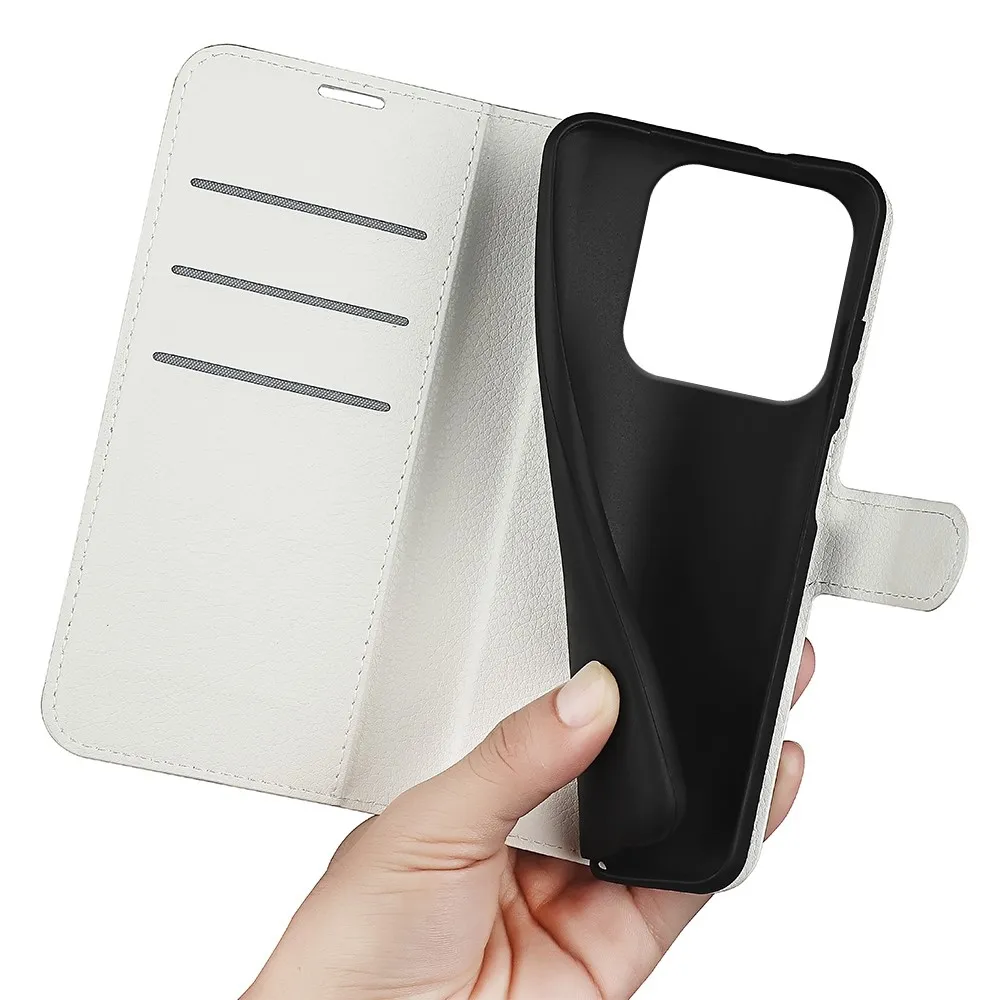Fehér Litchi pénztárca tok Xiaomi Redmi Note 14 5G számára