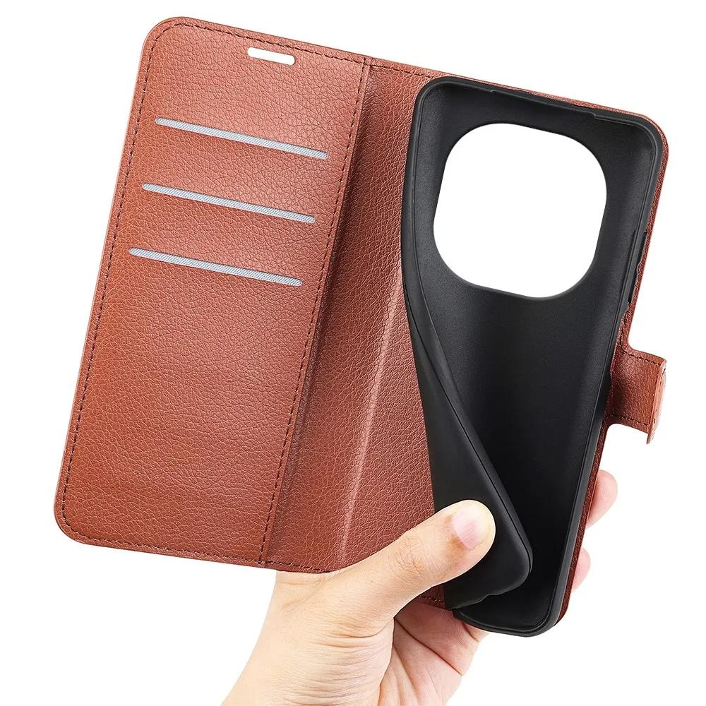 Litchi könyv tok a Xiaomi Redmi Note 14 Pro 5G/Poco X7 5G számára - barna