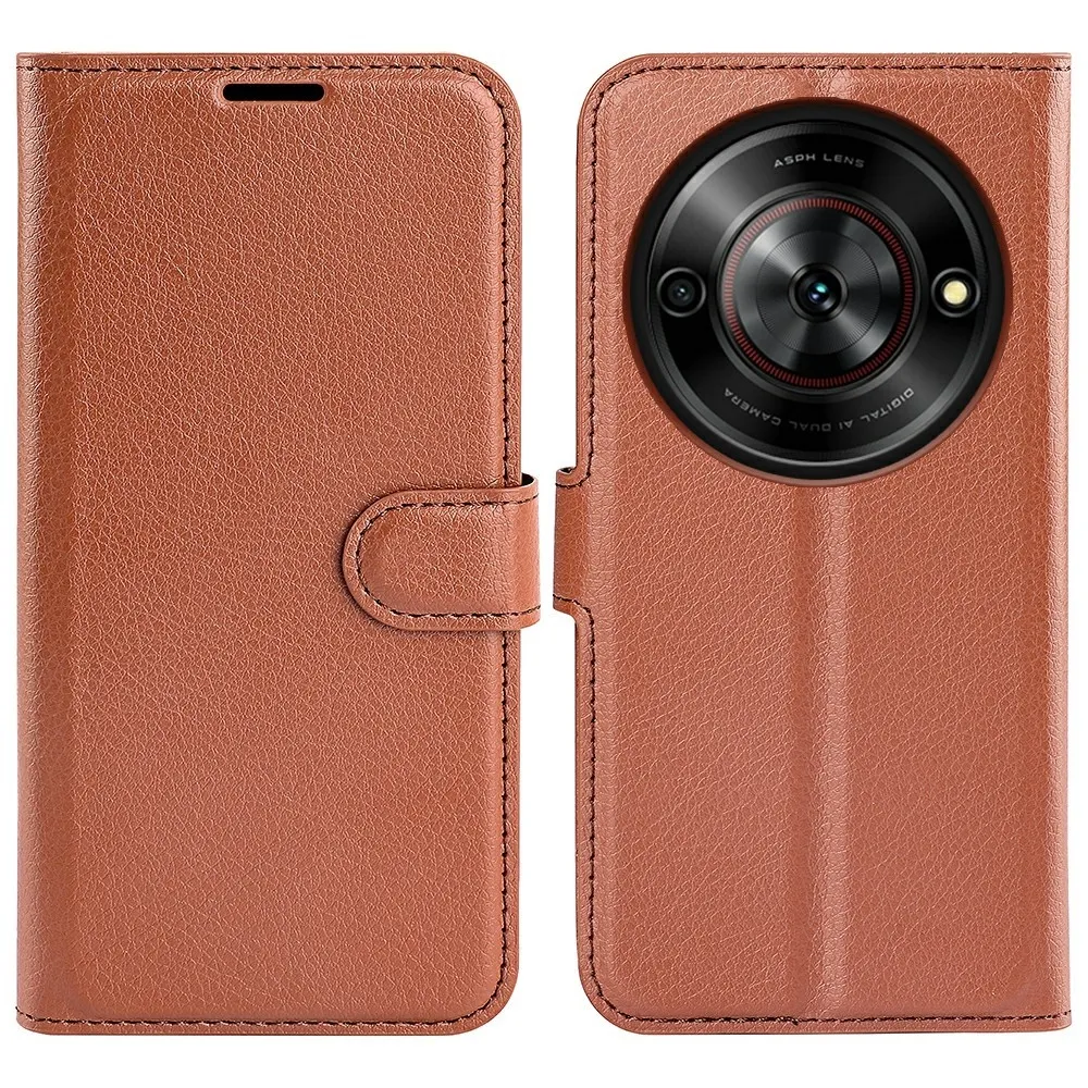 Litchi könyv tok a ZTE Blade A75 5G-hez - barna színű