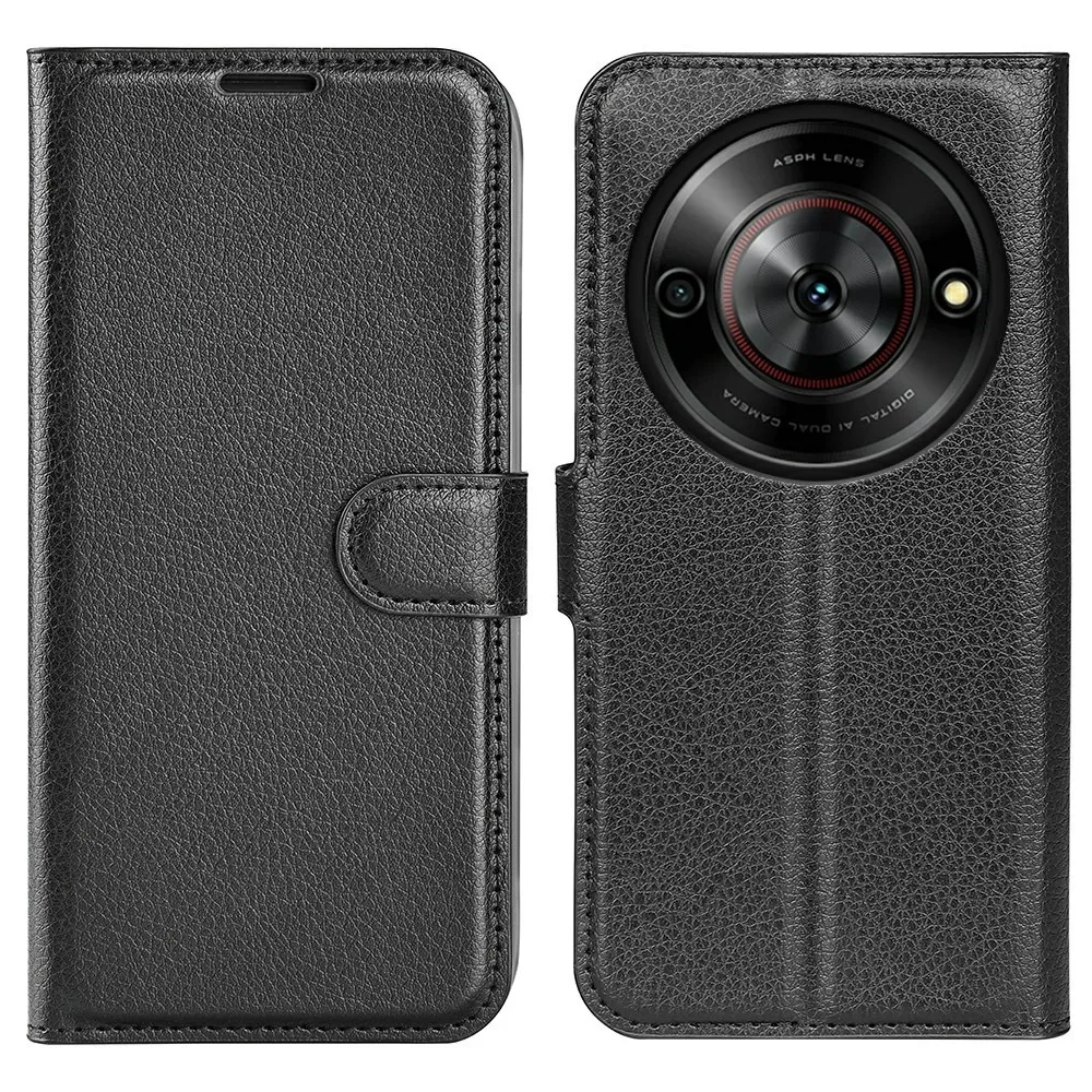 Litchi könyv tok a ZTE Blade A75 5G-hez - fekete