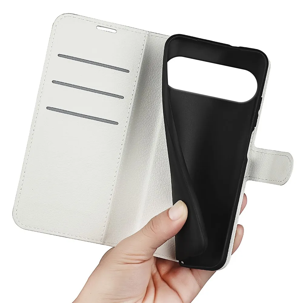 Fehér Litchi pénztárca tok a Google Pixel 10 számára