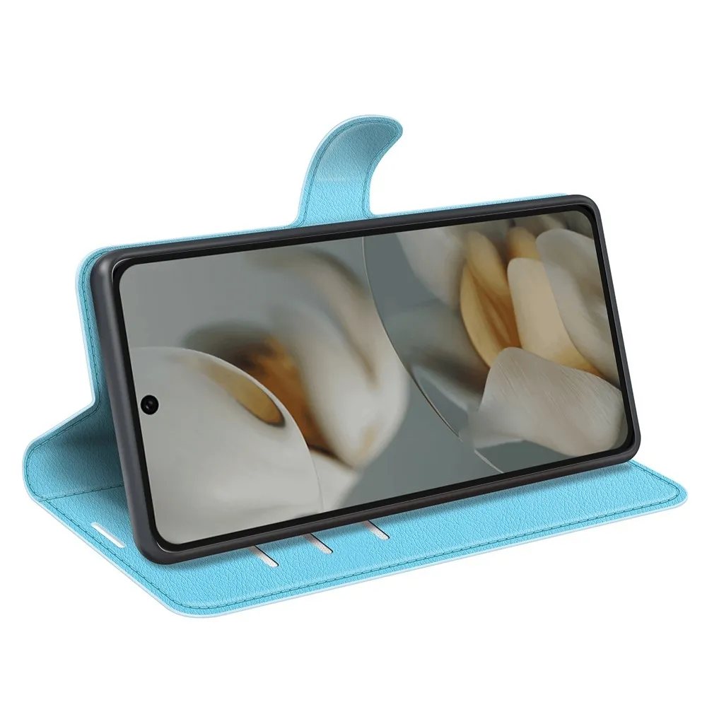 Kék Litchi pénztárca tok a Google Pixel 10 Pro XL-hez