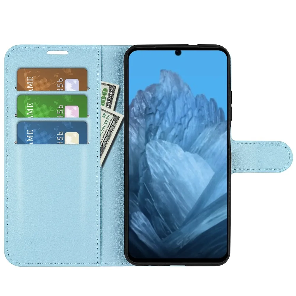 Kék Litchi pénztárca tok a Google Pixel 9/9 Pro-hoz