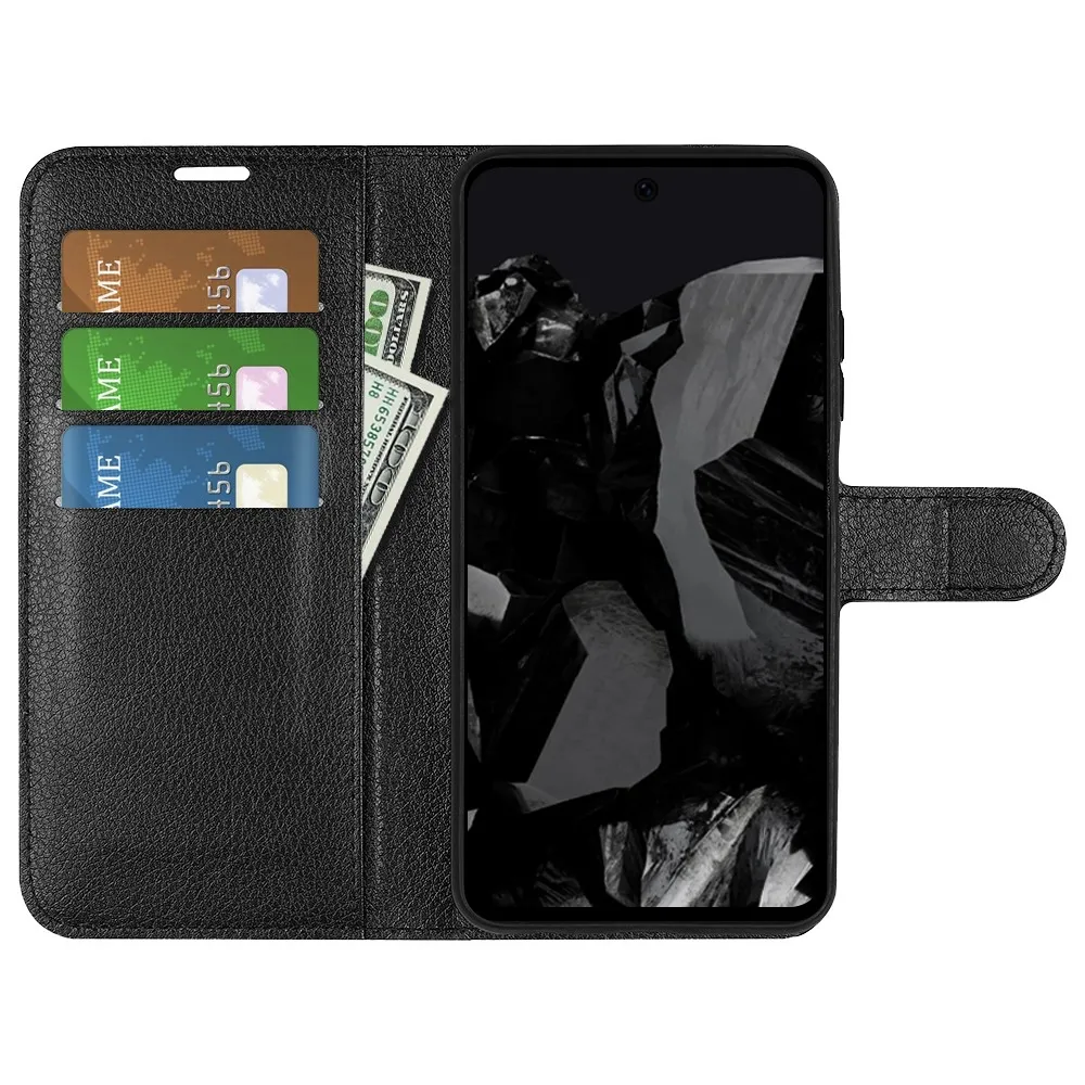 Fekete Litchi pénztárca tok a Google Pixel 9 Pro XL-hez