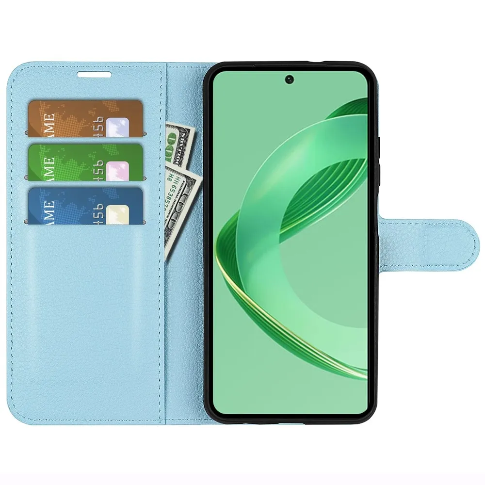 Kék Litchi pénztárca tok Huawei Nova 12 SE számára