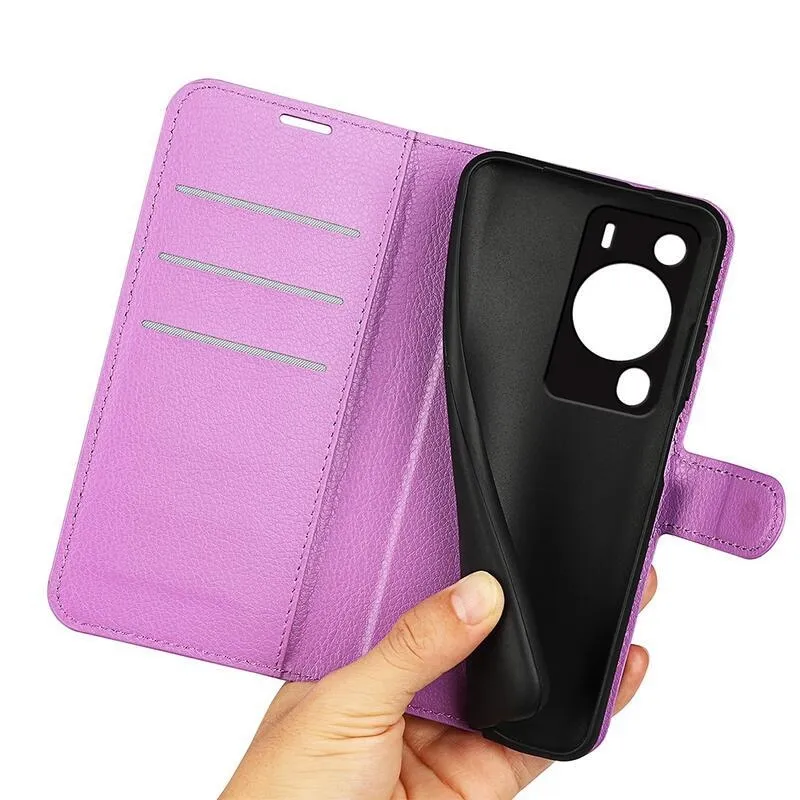 Litchi lila pénztárca tok a Huawei P60 Pro számára