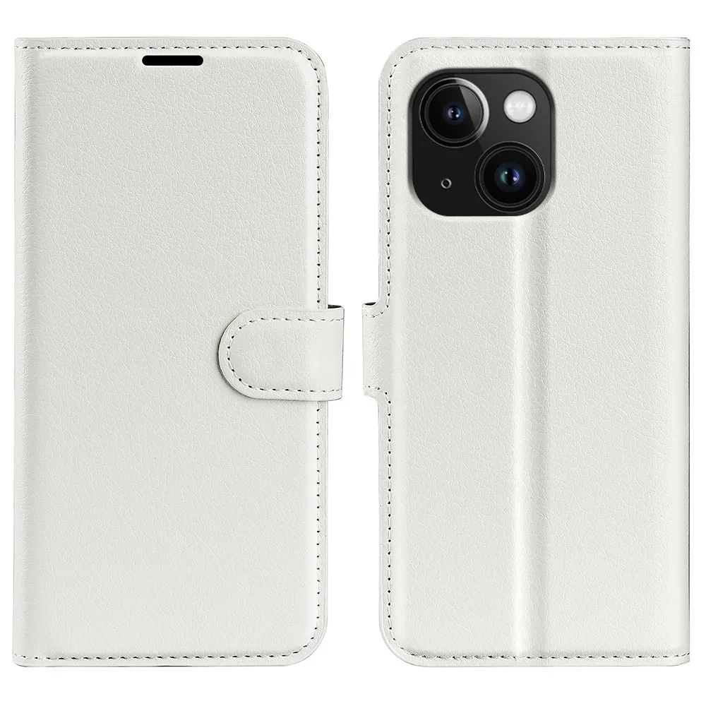 Fehér Litchi pénztárca tok iPhone 15 Plus készülékhez