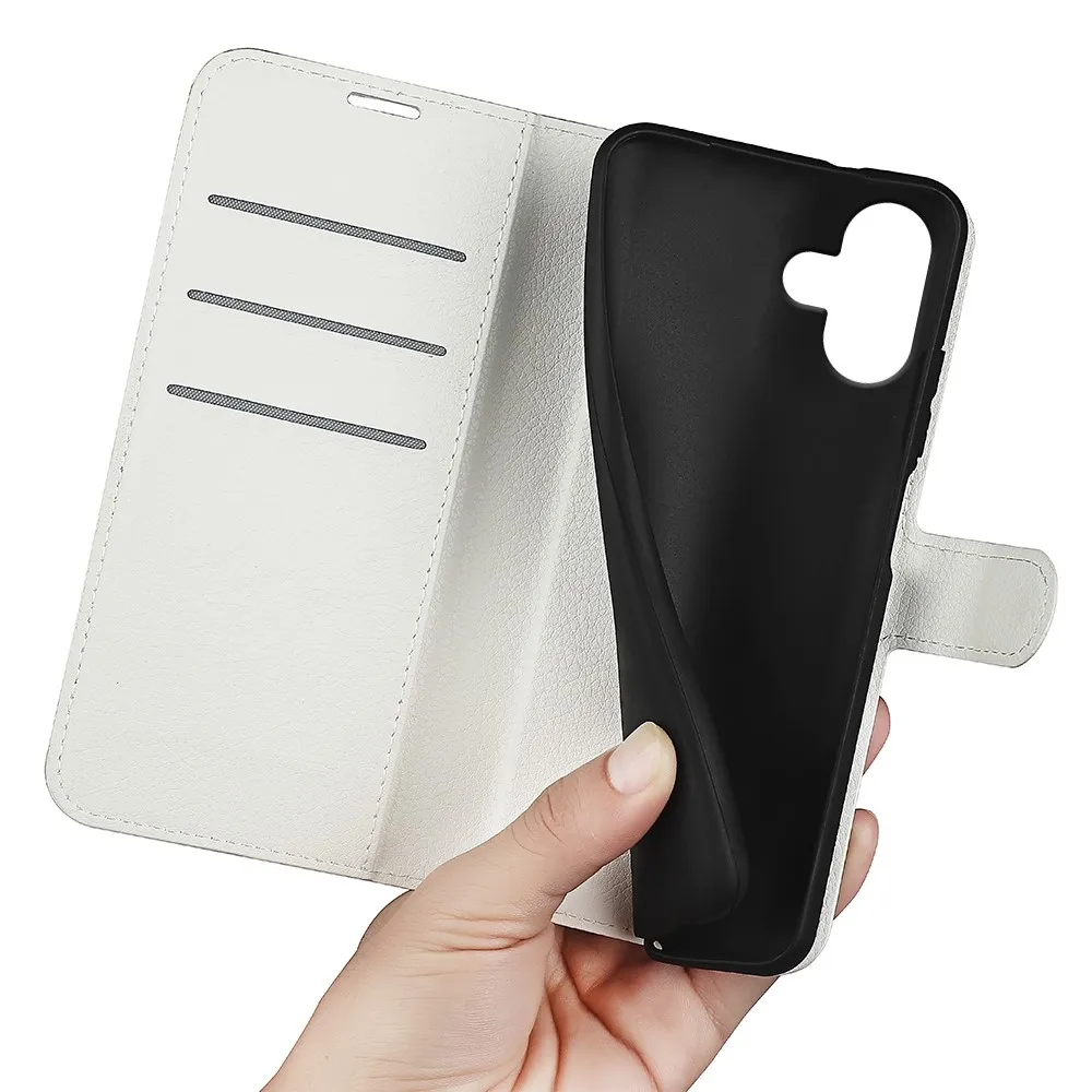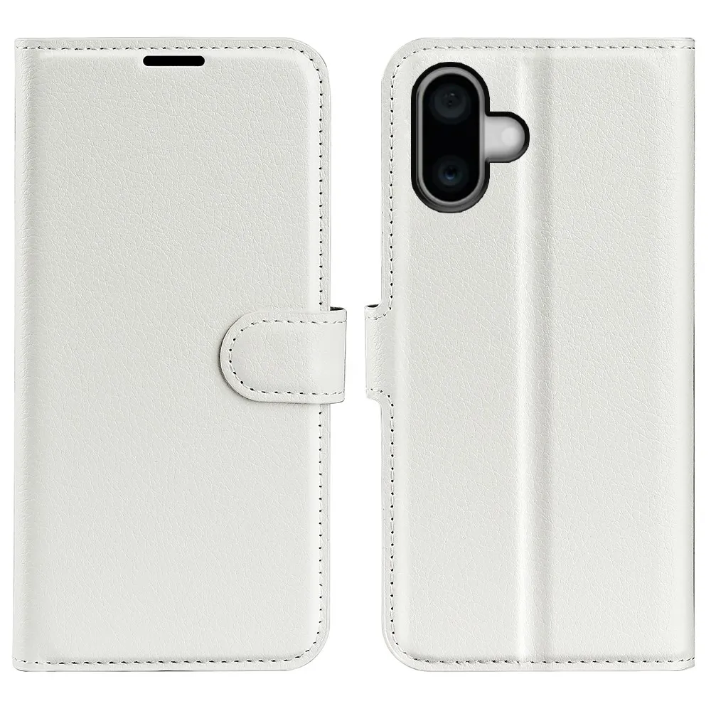 Fehér Litchi pénztárca tok iPhone 16 Plus készülékhez
