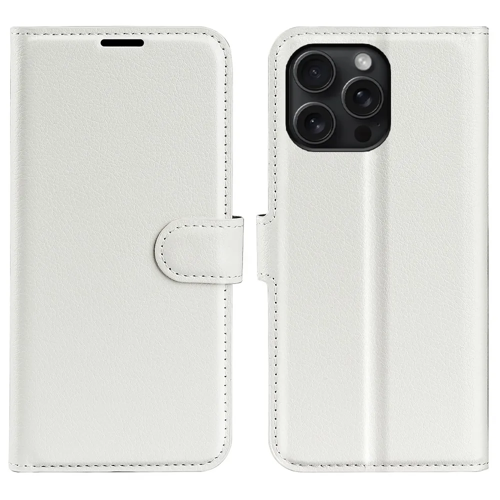 Fehér Litchi pénztárca tok iPhone 16 Pro Max készülékhez